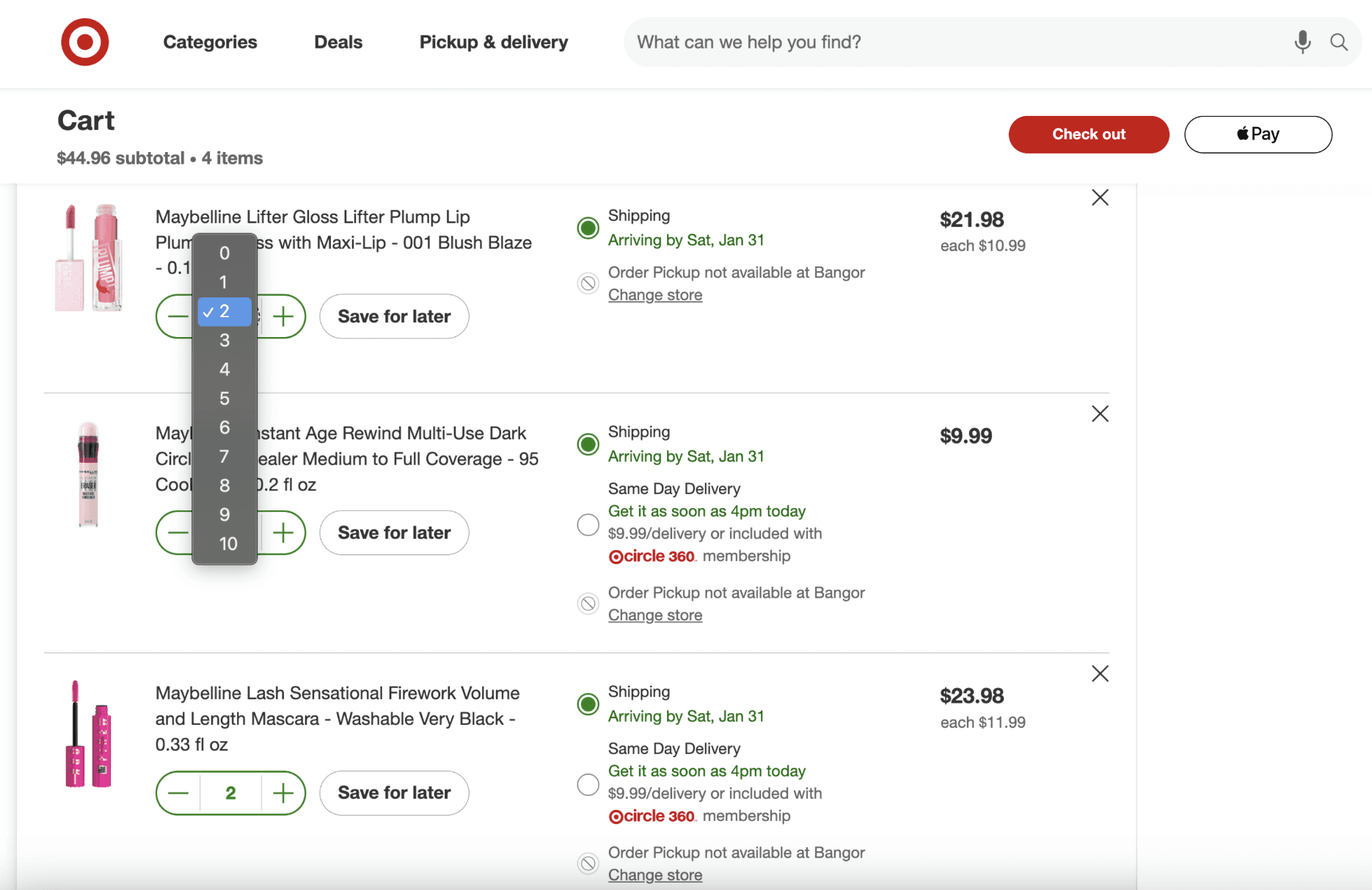 Pre-populated carts at Target